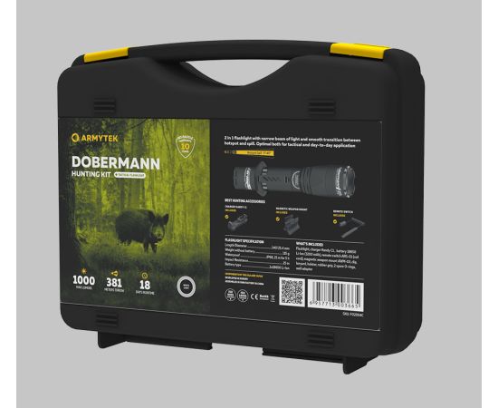 Dobermann Hunting Kit — это готовое решение для максимально эффективного использования на охоте. Набор включает в себя компактный тактический фонарь Dobermann и самые популярные аксессуары к нему.